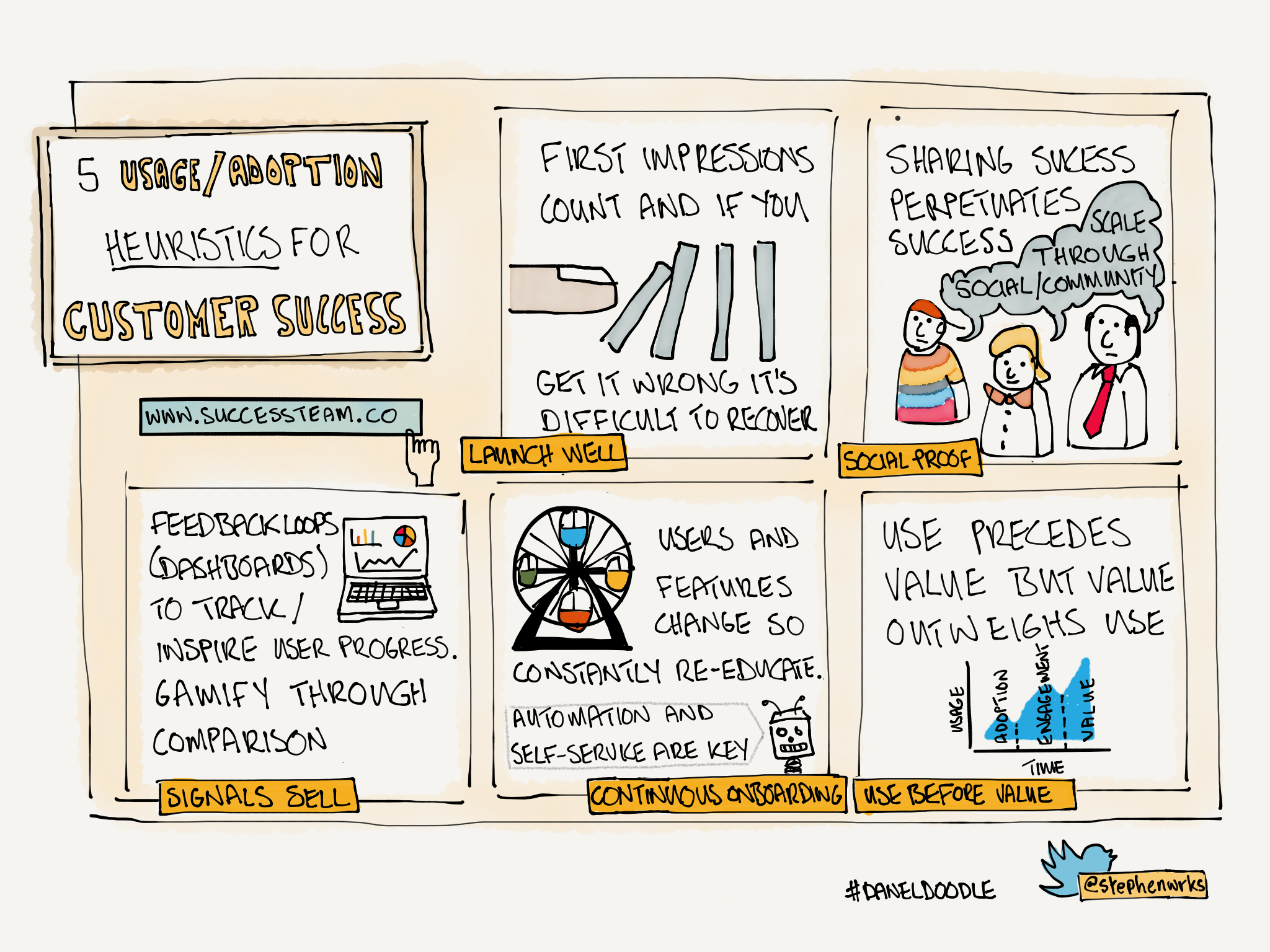 I wanted to capture some simple rules of thumb that I could use to easily remember the top line influences on my work in customer success. I created a doodle to make it fun and memorable (for me) but also shareable.