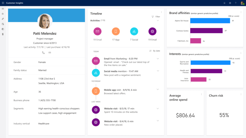 Coming back to more effective teamwork around the customer and their success with your technologies and their business. Microsoft’s Dynamics 365 Customer Insights helps teams have a single view of the customer and work better together on customer activities and their needs. It is infused with AI throughout.