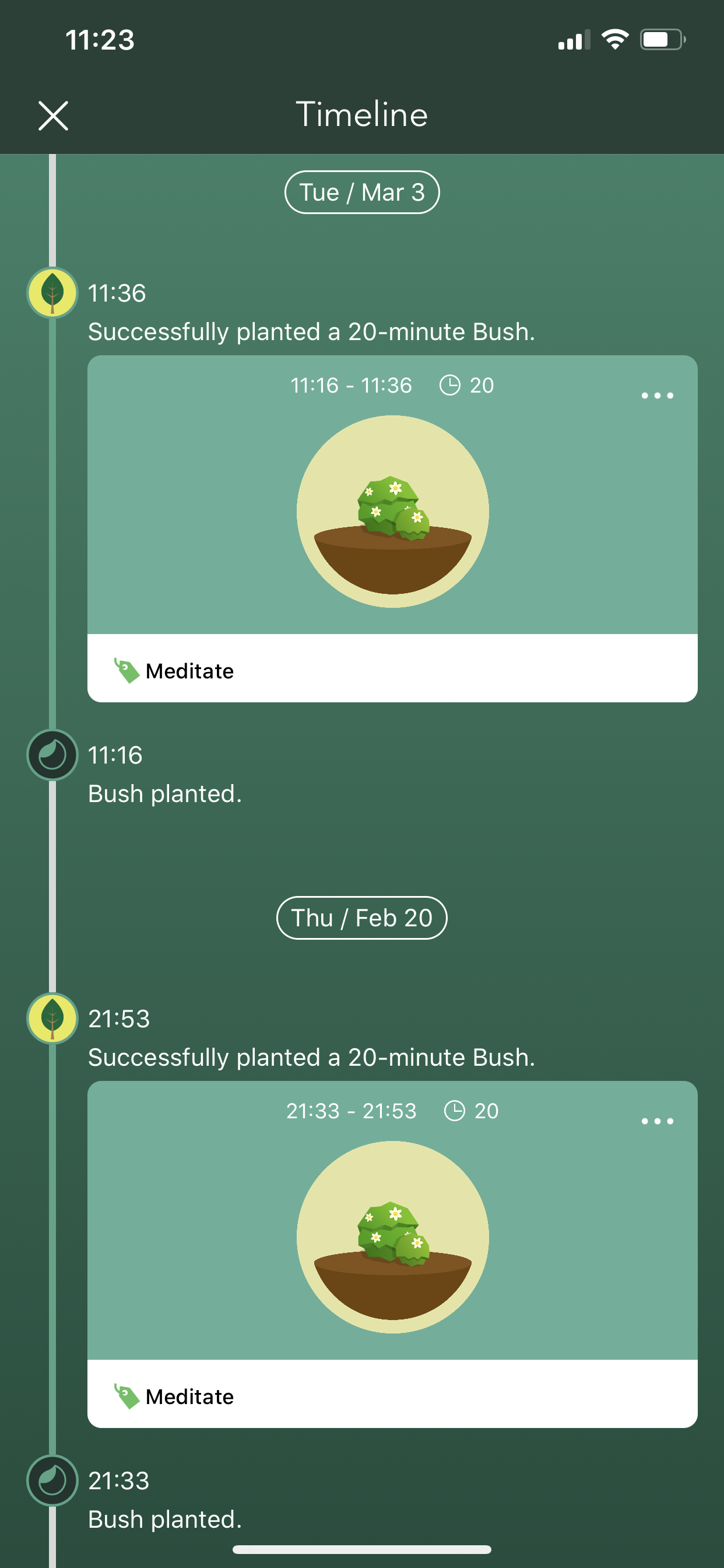 Another approach I take is with the Forest App and meditation. As you can see from the screenshot, I use it to log all my meditation sessions. Besides successfully planting virtual trees and bushes, I’m able to track the amount of time I meditate through some of the reports. I’ve tried HeadSpace and it doesn’t allow for tracking of meditation time. Mapping time spent meditating with my moods and mental wellbeing would be the next step which is something I do manually at the moment. I’m hacking my mental health by meditating. Direct experience shows me it works – relational evidence would be awesome.