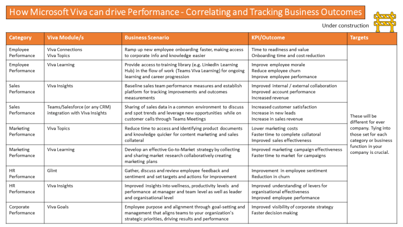 I’ve had to make this generic and I’ve not added specific targets but the clues to what those would be is in the KPI/Outcome column.