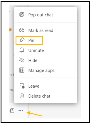 The way to pin chats is found at left – hover over the chat title until the three dots appear and, in the pop up, you’ll see the option.