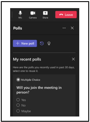 You can add Polls before a meeting starts and you can add more than one. This way you are ready to launch the Polls at the appropriate time throughout the meeting.