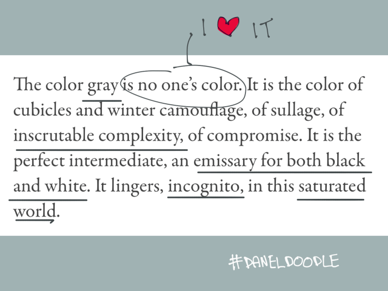 Check out this beautifully simple website and post with gorgeous prose for evidence of that (the image is a small sample I superimposed some doodles on): The Paris Review – Ode to Gray.