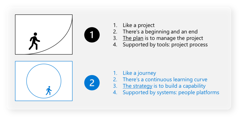 There are two ways you can approach an AI Transformation. Simply put, it’s to view it either as a destination or a journey. At a more specific level, I have touched on this before and broken it down into these two approaches: Project versus product management in AI Transformation.