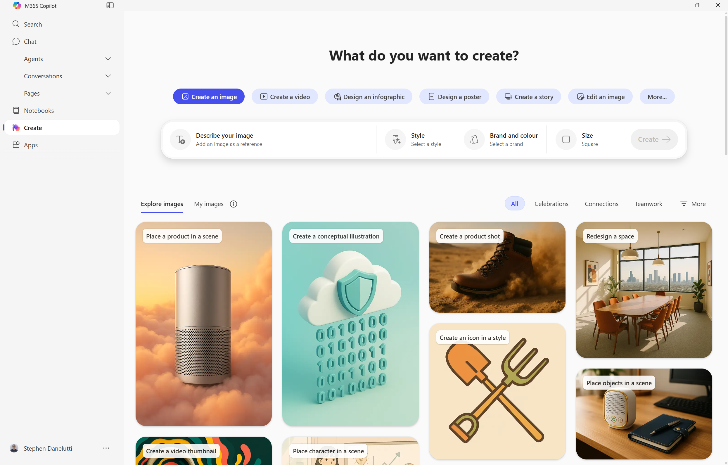 The other big change from Microsoft is that they have embedded a lot of what I first showed in Designer, into the Microsoft 365 App, alongside many of the other AI tools from Microsoft. Not that Designer doesn’t continue to exist standalone – it does: Microsoft Designer – Stunning designs in a flash.
