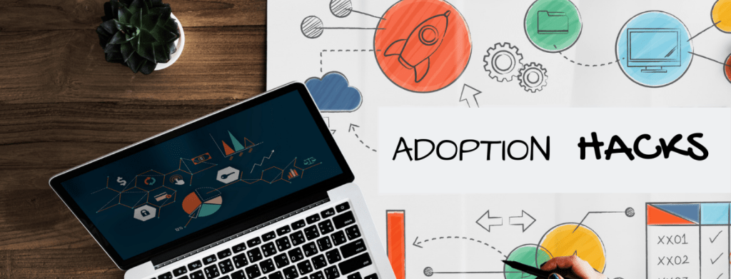 Adoption hacks are little tips and tricks you can use to stimulate adoption of technology. Actions that can include any number of activities, all designed to get users learning about, understanding and using features of a technology to get new value from it. Activities can be anything from communication, learning components, social proof (showing how…
