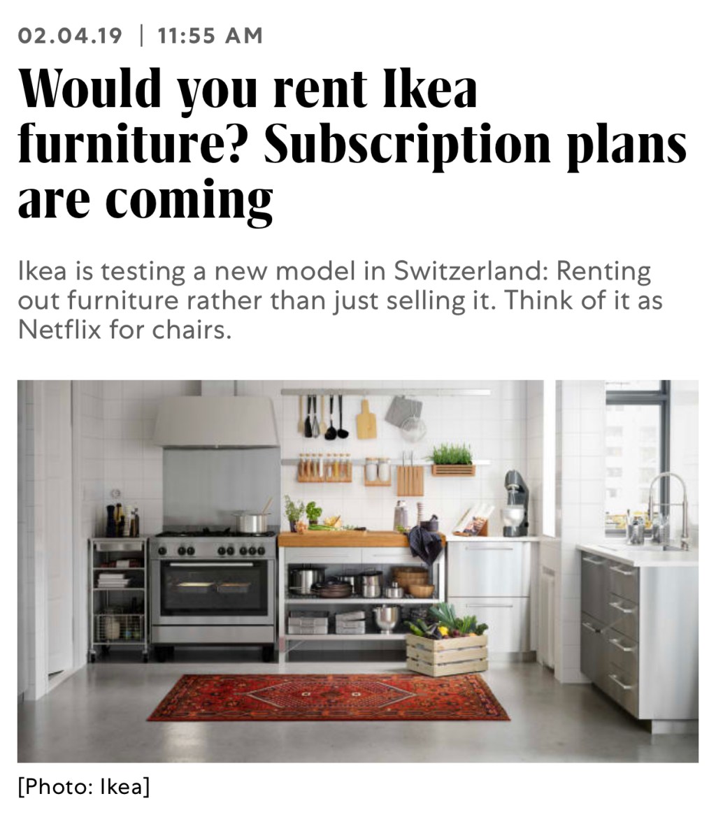 When Ikea considers changing its business model then you know something is afoot. The big news this last week was Ikea thinking about making certain items available on a subscription basis. Good article on that here where the screenshot at left is from. It’s looking at doing so on a trial basis so this will…